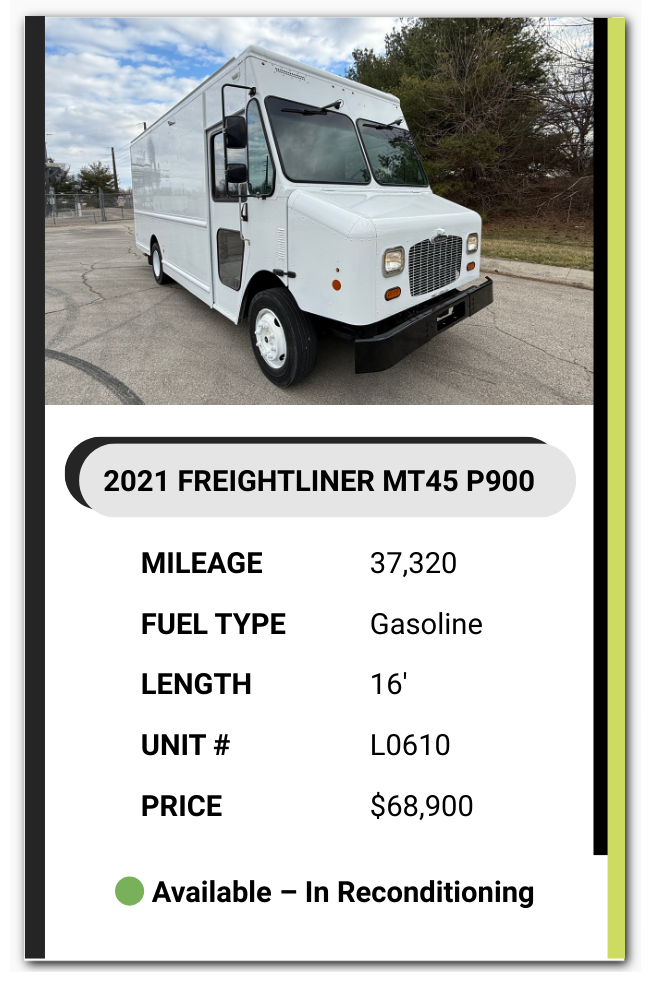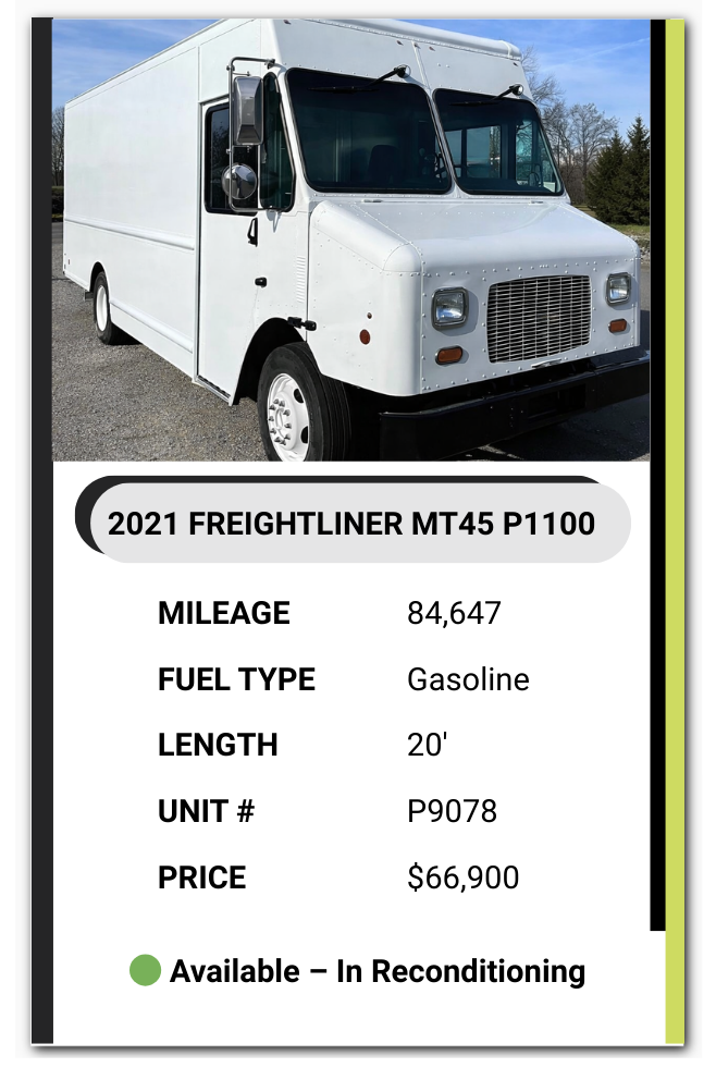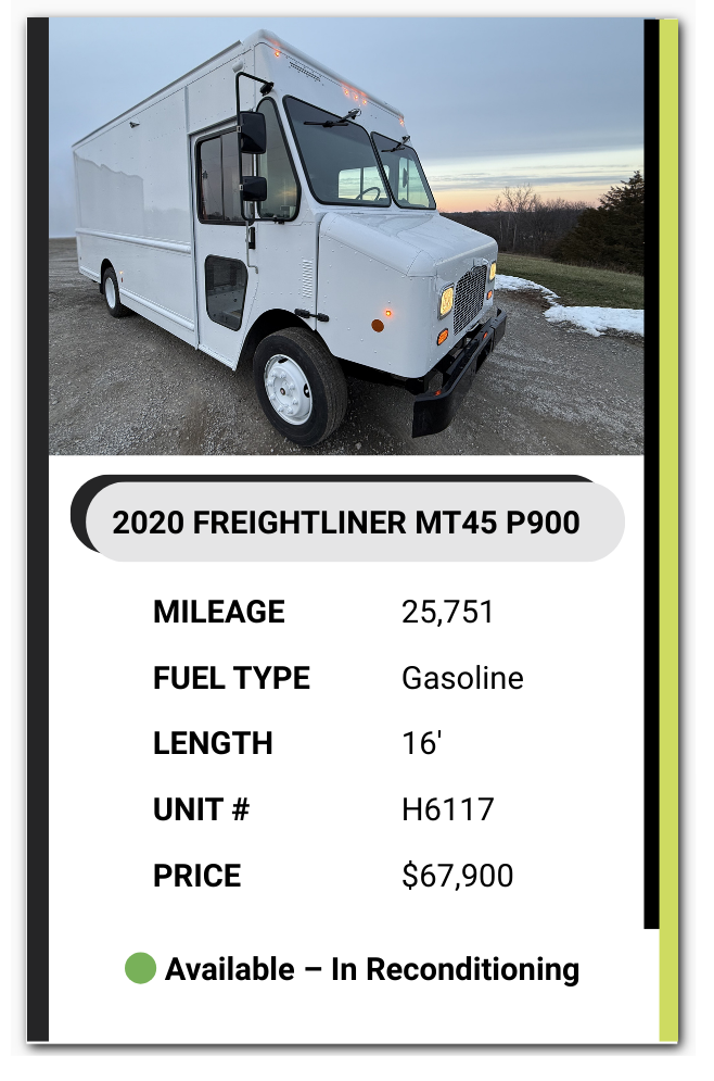 Browse our available step vans online or reach out after seeing one that fits your needs. You can call us directly or submit a contact request — our team will confirm availability and answer any questions.